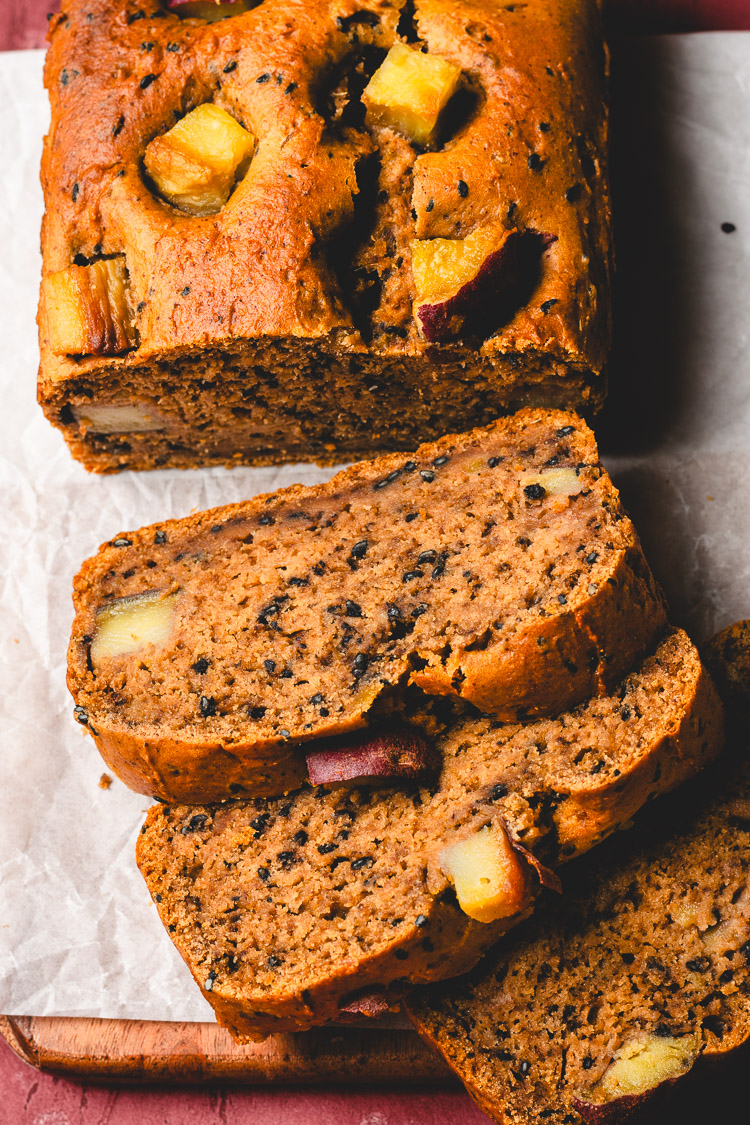 Creamy, caramelized roasted Japanese sweet potato makes this bread deliciously dense, moist, and sweet. Vegan, whole grain, and oil-free!