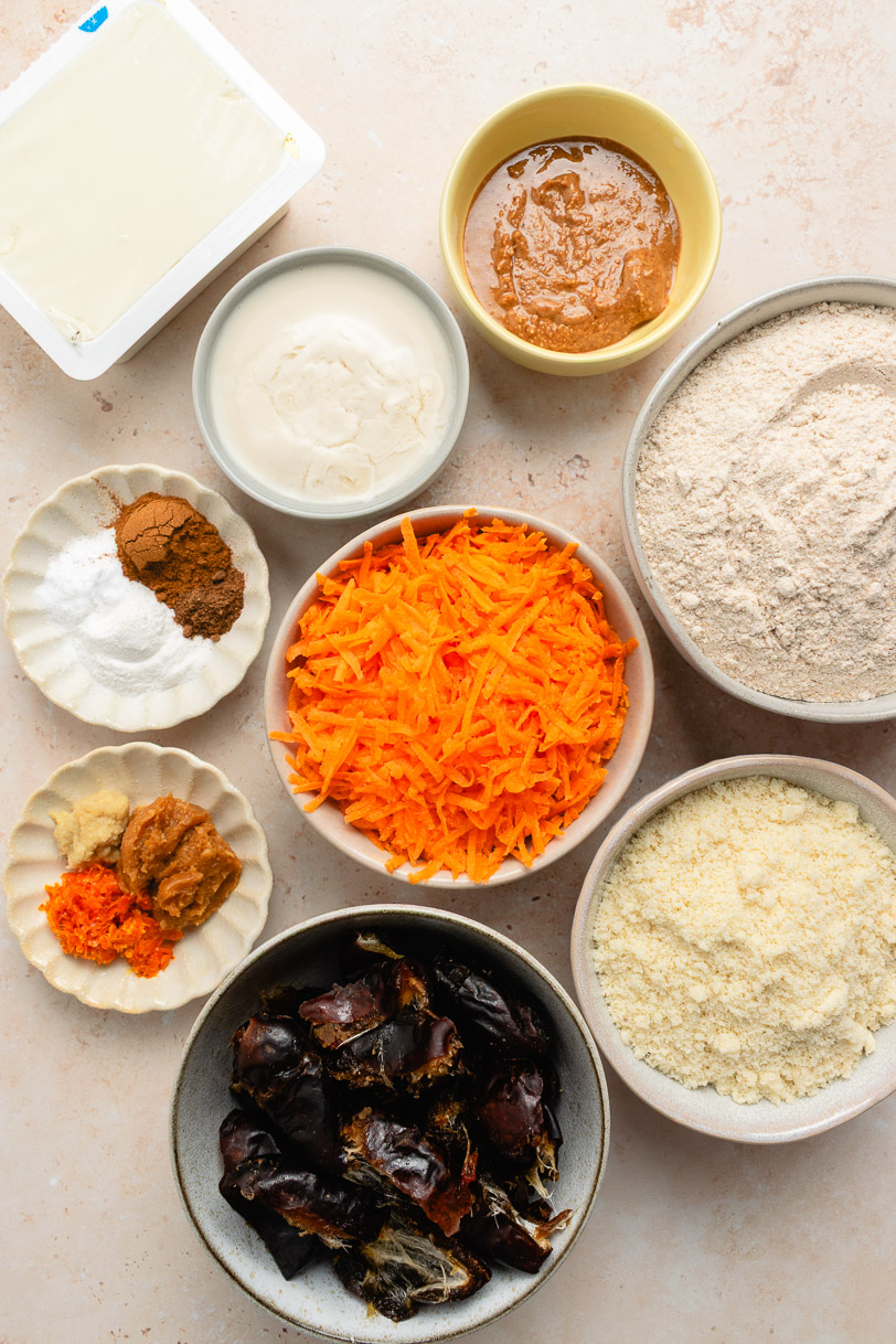 - Dates ⟶ These are the only sweetener in this carrot bread, no extra sugar necessary! Not only are dates packed with natural sugars, but they’re also a good source of dietary fiber, B vitamins, and minerals like potassium, magnesium, and copper.