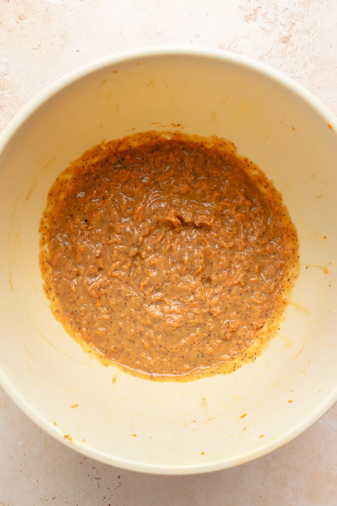 - Carrots ⟶ Use freshly grated/shredded carrots since pre-grated carrots are much drier.
