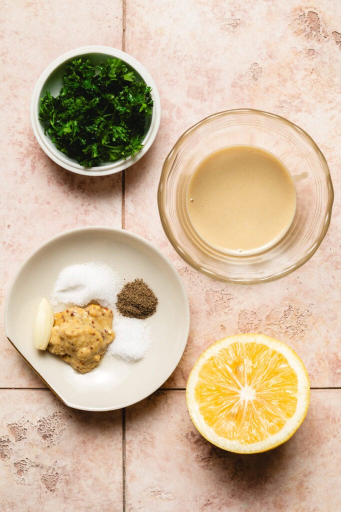 - Vegan Mayo, Yogurt, or Tahini ⟶ The creamy element that ties this salad together. I like to use my homemade Japanese mayo, Trader Joe’s unsweetened cashew yogurt, or tahini.