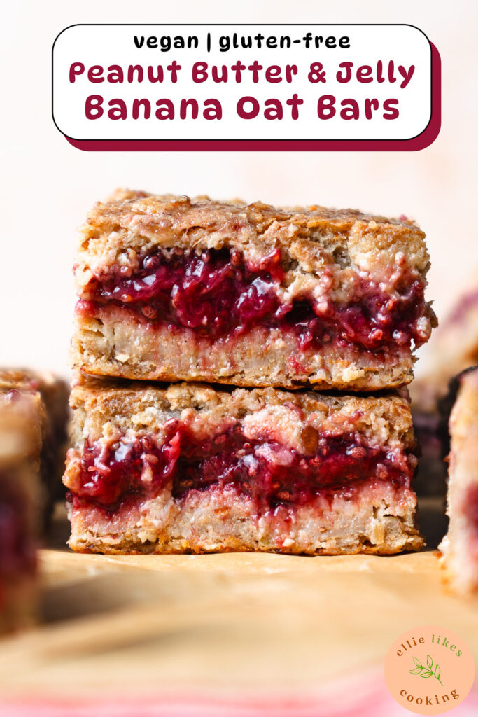Healthy banana oat bars flavored with peanut butter and filled with an easy chia jam filling. Perfect for an on-the-go breakfast or snack!